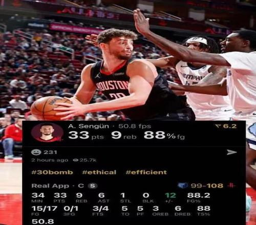火箭逆转擒灰熊!申京17投15中轰33+9+6杜兰特33+8JJJ17+7